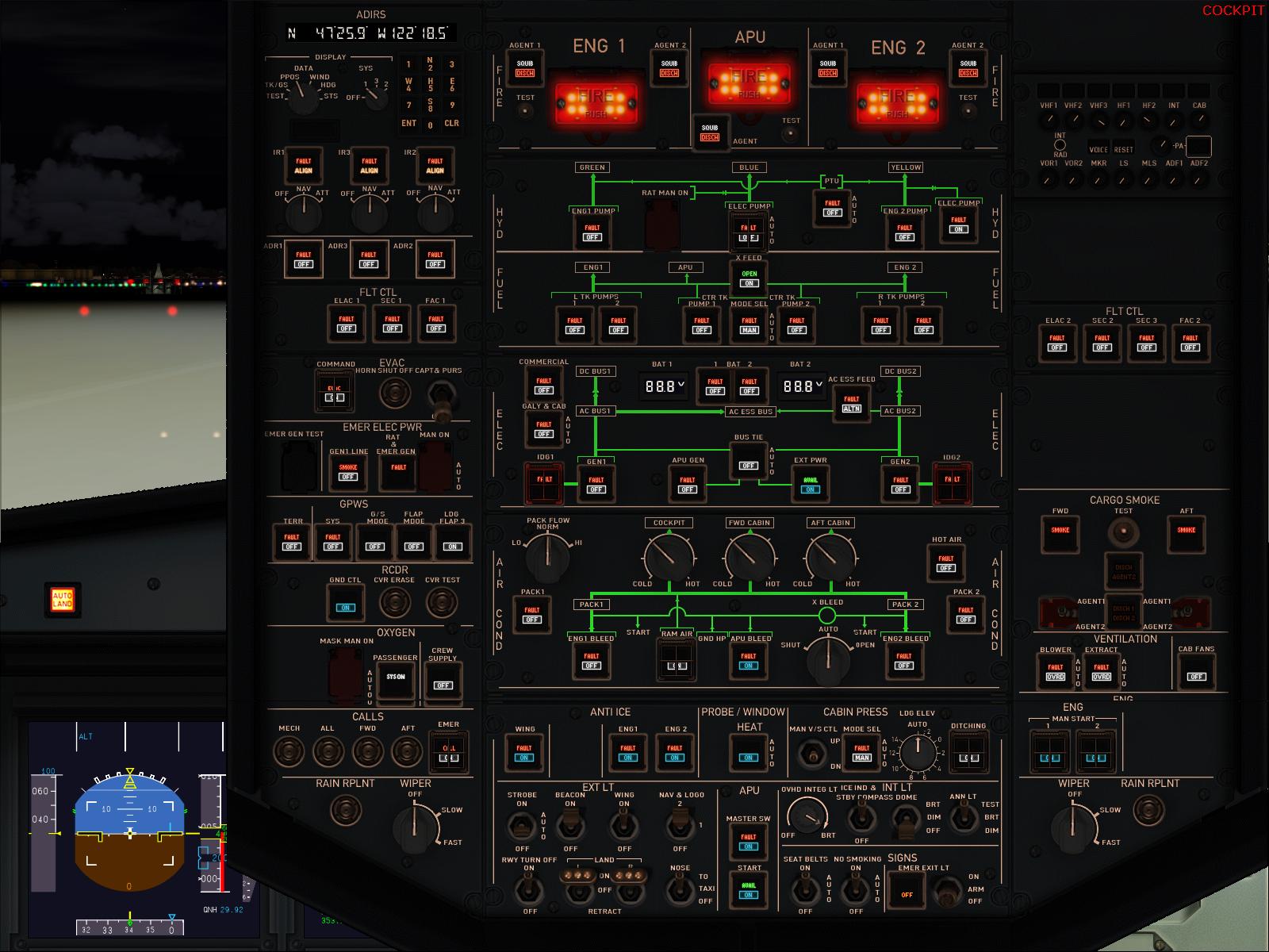 All AirSimmer aircraft systems are powered by proper AC or DC electrical sources. Watch what happens to landing lights when AC1 bus loses power!